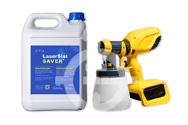 This kit includes LaserSlat SAVER™ (5-liter jug) paired with the required applicator 3YOGUN for optimal results at a special price. You will be able to tell the difference in just a few days, and each liter can protect your cutting table for up to 4 weeks*